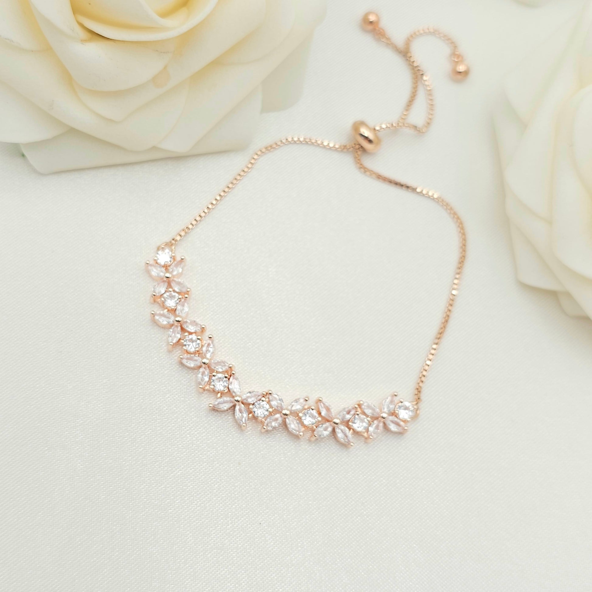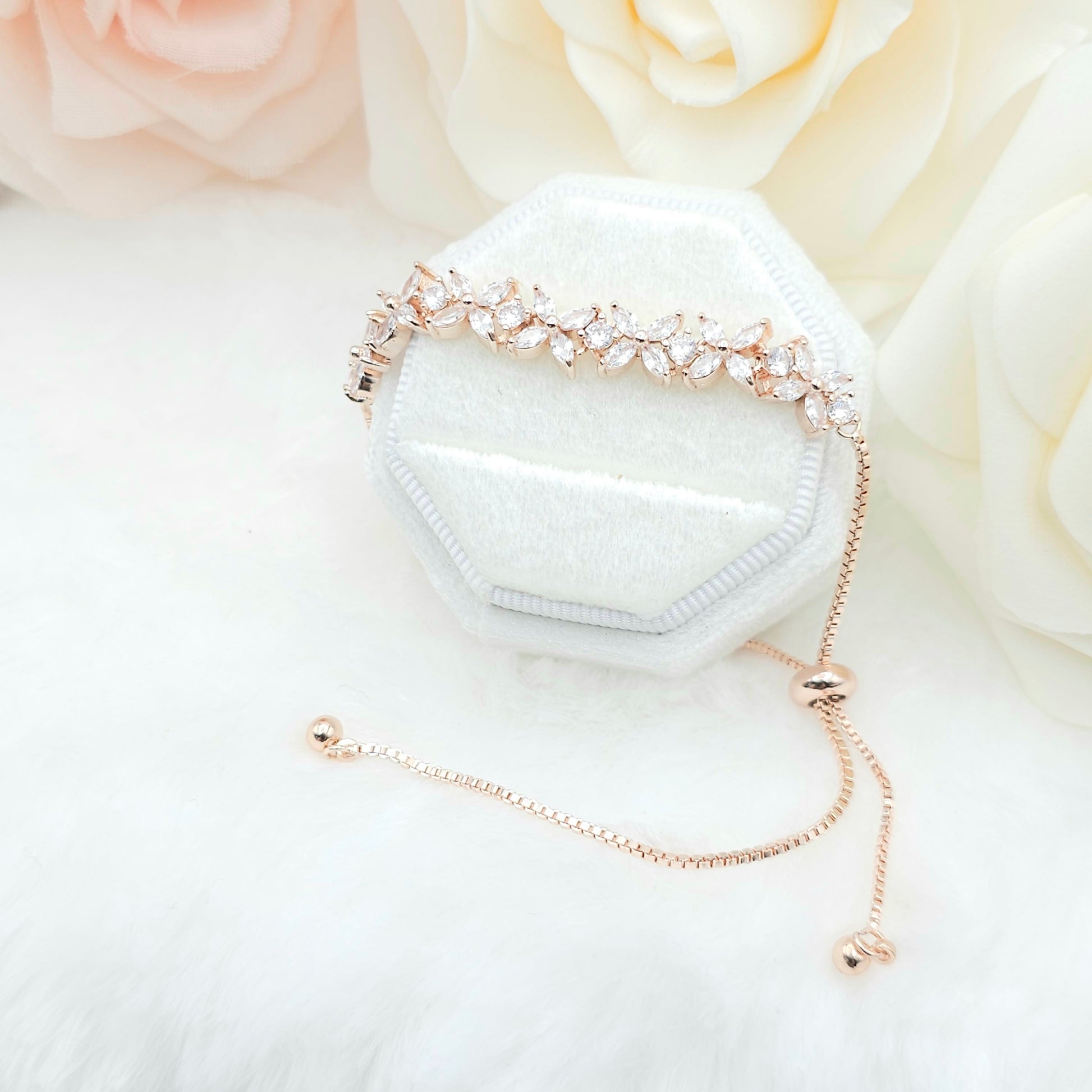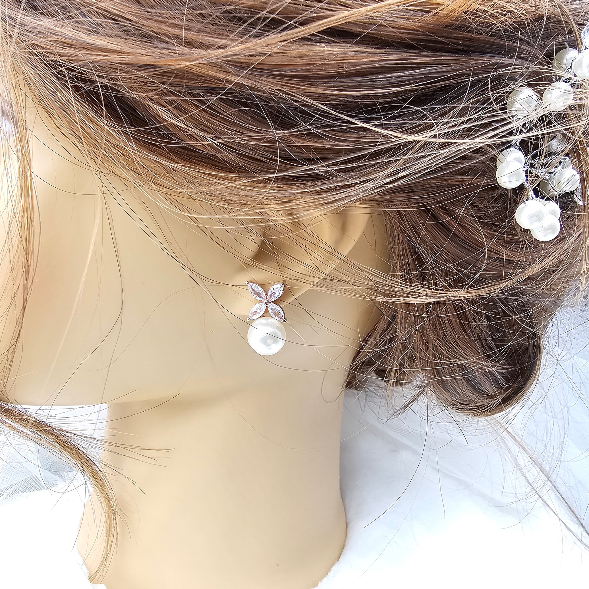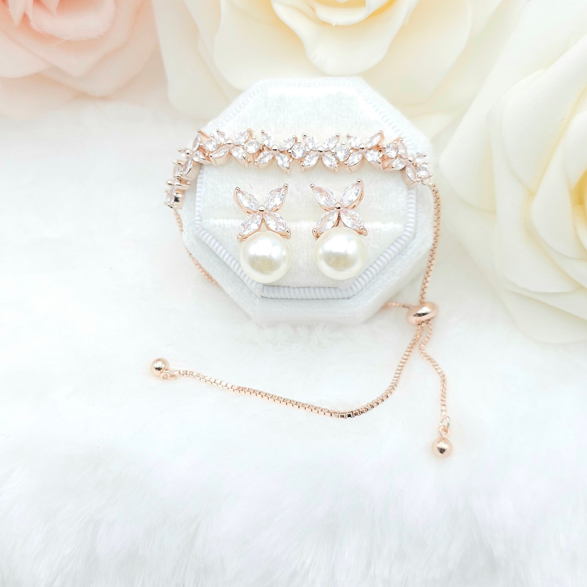leaf Pearl Necklace & Earring and Bracelet 3Set. Bridesmaid ROSE GOLD Pearl Necklace and Earring. Bridal pearl necklace Set.